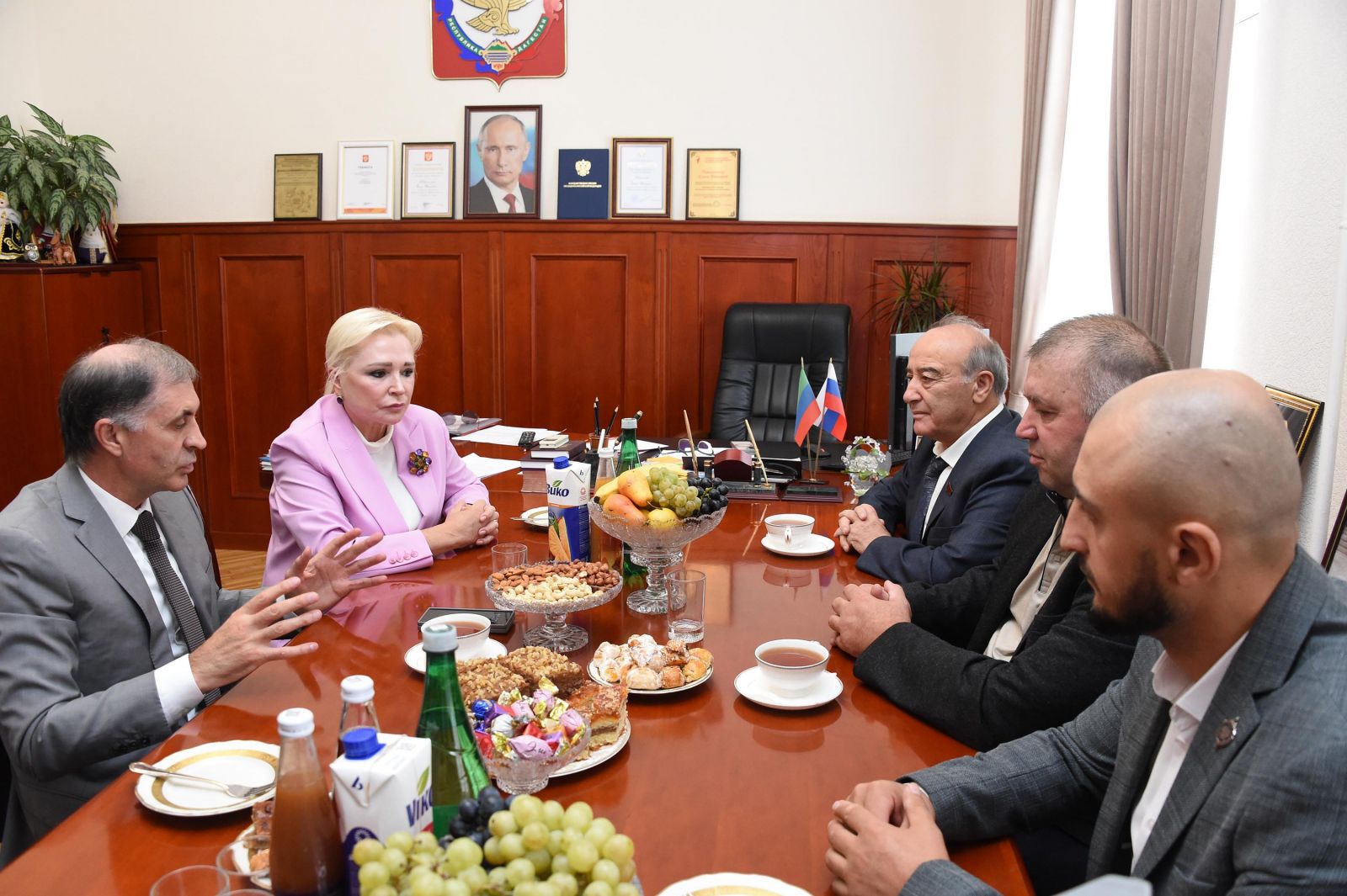Одним из первых Ома Чаринов посетил Комитет Народного Собрания по образованию и науке, где под руководством председателя Елены Павлюченко проходит стажировку другой участник программы "Доблесть гор" – Ахмед Магомедов. Елена Павлюченко рассказала о работе и задачах Комитета.