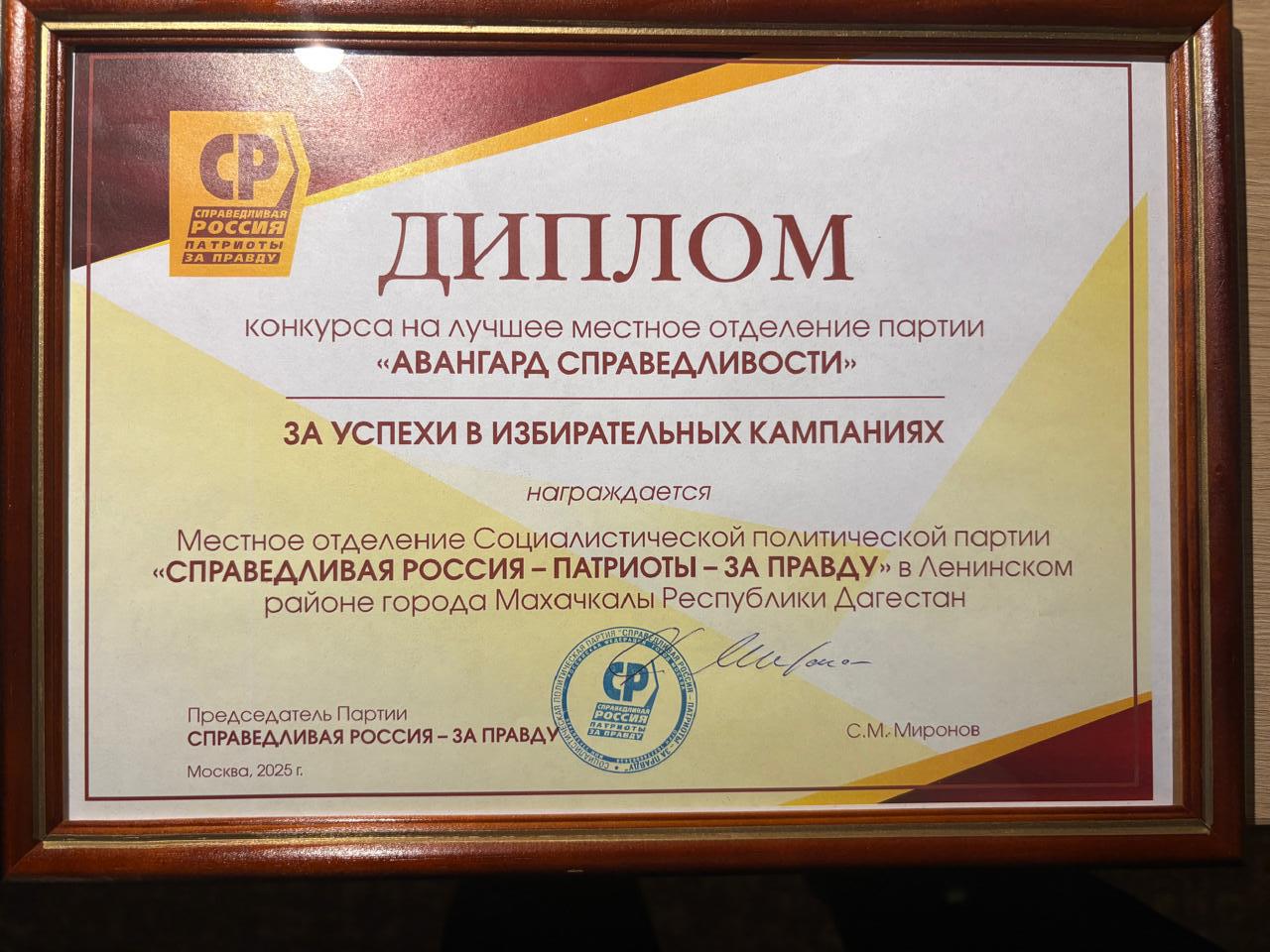 В числе руководителей местных отделений партии одержавших победу в конкурсе "Авангард Справедливости", награду из рук С.М. Миронова получил руководитель местного отделения в Ленинском районе Махачкалы Нурмагомед Габибуллаев.