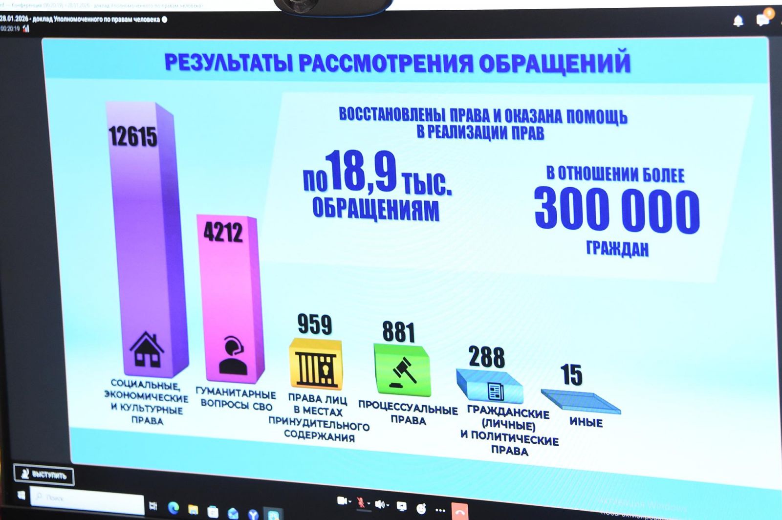 Уполномоченный по правам человека в РФ привела статистику обращений: в 2025 году в аппарат ведомства поступило 128 тысяч обращений. Более половины из них (72 тыс.) были связаны со специальной военной операцией, оказанием помощи участникам СВО, членам их семей или же жителям территорий, где проходила спецоперация, а также приграничных территорий. Говоря о ключевых направлениях работы, Москалькова классифицировала возвращение и помощь военнопленным, поиск пропавших без вести, обеспечение социальных гарантий для участников СВО и их семей, вопросы воссоединения близких и родных и ряд других задач. "По каждому из названных направлений был выстроен алгоритм действий", – отметила Татьяна Москалькова.