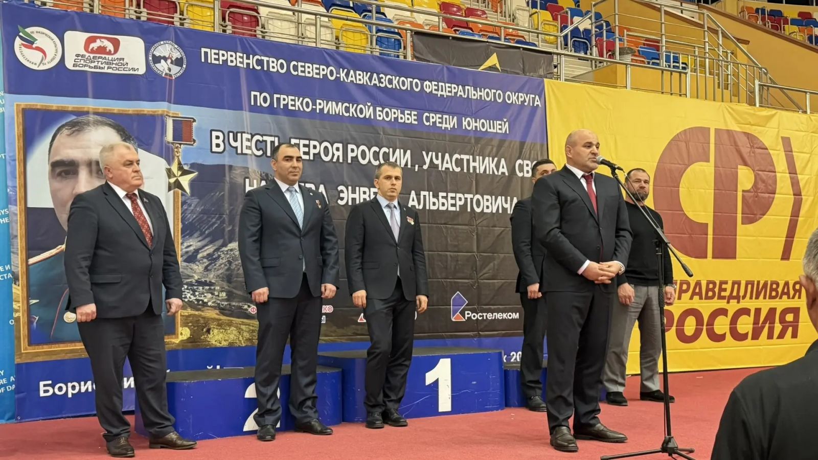 Сегодня, 25 февраля, во Дворце спорта имени Али Алиева в Каспийске состоялось открытие Первенства СКФО по греко-римской борьбе среди юношей имени Героя России, участника СВО Энвера Набиева.