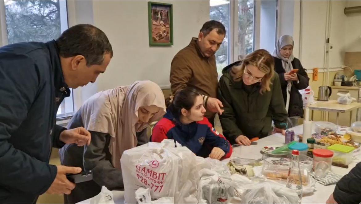 Пункт временного содержания пострадавших от наводнения расположен в общежитии Финансово-экономического техникума. Здесь расположились люди, лишившиеся в своих домов и имущества. Обстановка напоминает пчелиный улей. Люди каждый день ходят к своим затопленным домам, записываются на помощь, заботятся о детях. Куратор пункта размещения спервого дня - руководитель фракции "СПРАВЕДЛИВАЯ РОССИЯ" в Махачкалинском Горсобрании Нурмагомед Габибуллаев. Он сам и его помощники: Замира Магомедова, Ислам Абдулаев, Рашид Абдулаев - с утра до вечера заняты людьми. Обеспечивают горячис питанием, фруктами и овощами, бседуют, выясняют потребности. Ислам Абдулаев подарил эвауированным телевизор, чтобы было не так скучно. А еще он директор стоматолоической клиники и бесплатно лечит зубы пострадавшим. В Пункте постоянно дежурит влач и медсества. Продукты приходится пополнять каждый день. Нурмагомед купил обатателям Пункта дежду, резиновые сапоги, все что нужно для жизни, вплоть до постельного белья. Каждый день выясняются новые потребности. Но помогают и простые махаачкалинцы. Скромно одетая женщина приходит с сыном-подростком, несущим баул с одеждой для эвакуированных. Протягивает деньги их берут с благодарностью. Сестры из клиники Умуд приходят, чтобы обследовать пострадавших Проверяют каждого. Нурмагомед бесудет со своими подопечными. Каждый пострадавший дом он знает лично. Для приема завлений о пострадавшем имуществе целый день с людбми работают работники Администрации Соетского района. Замира помогает женщинам готовить обед. Жизнь продолжается. Никто не остался наедине со своей бедов. Солидарность сплачивает людей. Это и есть гражданское общество, создающееся на наших глазах.
