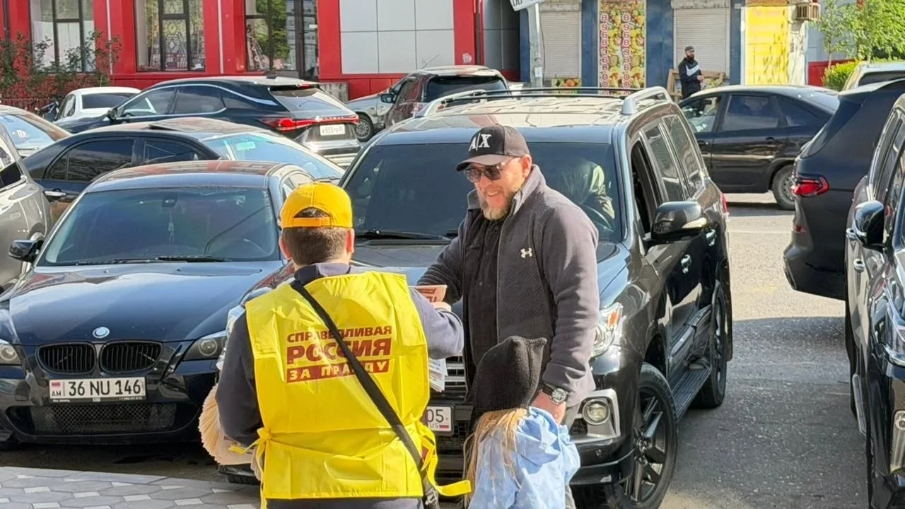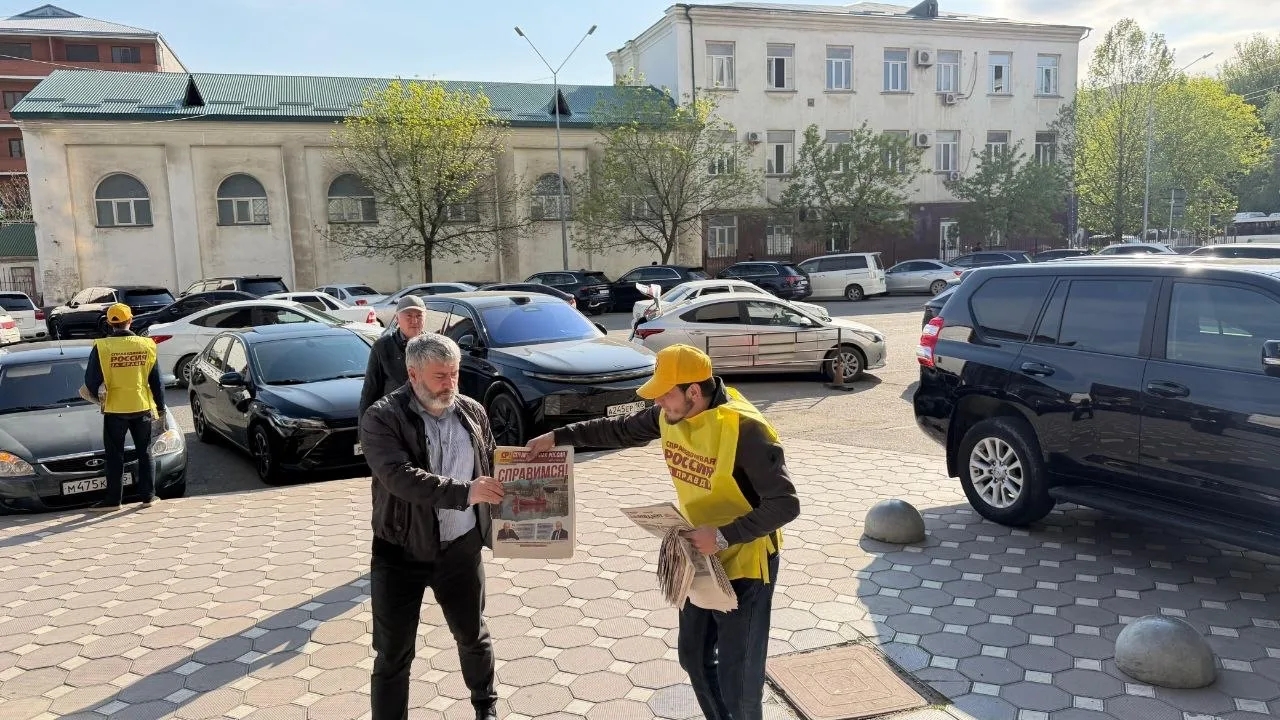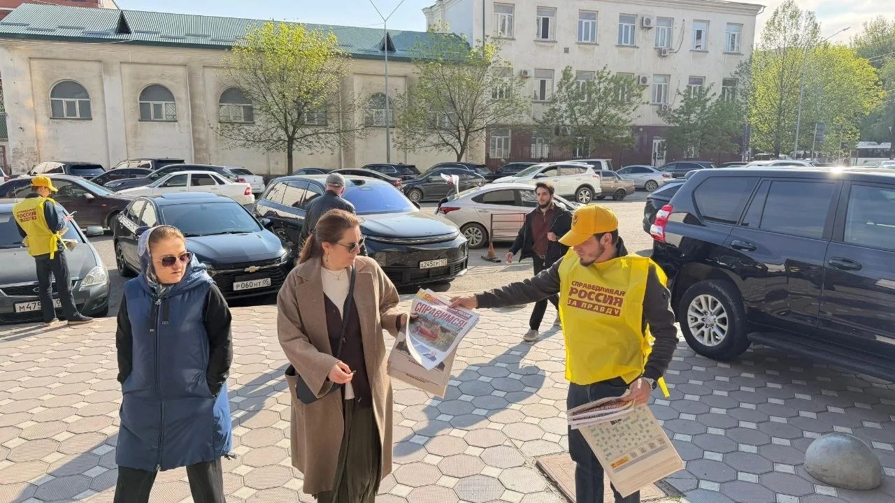 Пикет по распространению газеты "СПРАВЕДЛИВАЯ РОССИЯ" в Махачкале